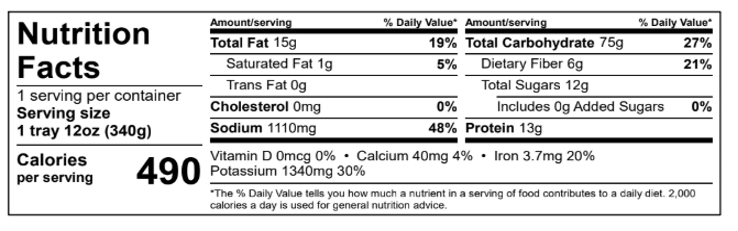 INGREDIENTS: penne (durum wheat semolina, niacin, ferrous lactate, thiamine mononitrate, riboflavin, folic acid), tomato puree (tomato pulp), tomato paste (tomatoes, citric acid), water, zucchini, onions, canola oil, grape tomatoes, buffered vinegar (preservative), tomato sauce compound (starch, salt, tomato powder, herbs, saccharose, onion, spices, canola oil), kosher salt (salt, yellow prussiate of soda), cayenne pepper.